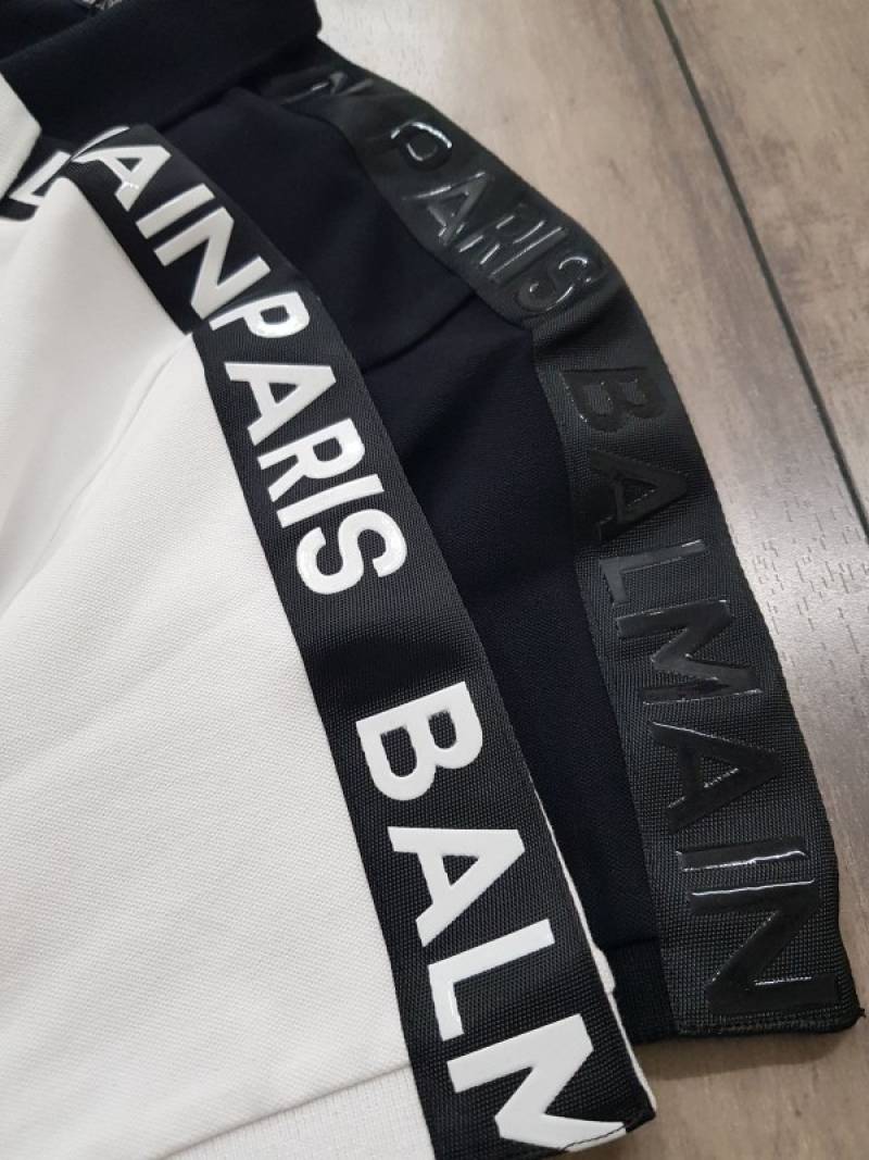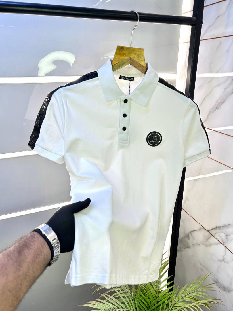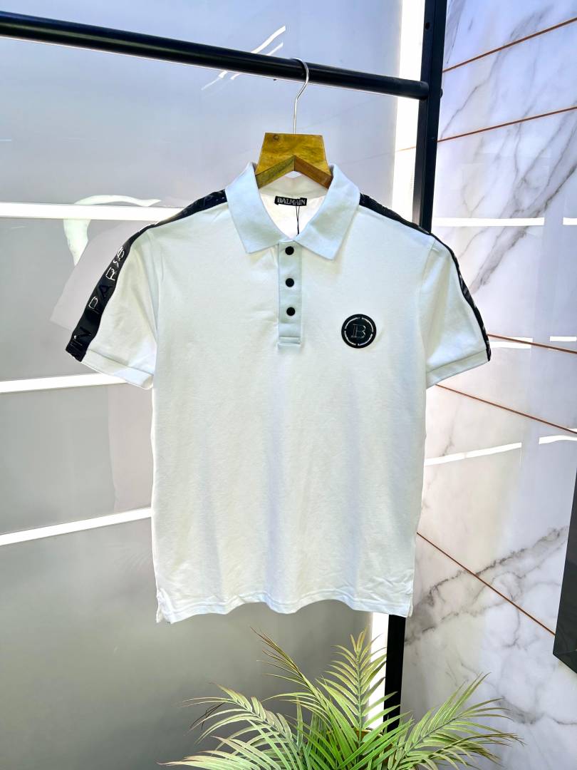 Balmai n Paris Metal Logo Imported Embossed Print White Collar Neck T-shirt F2832-WH