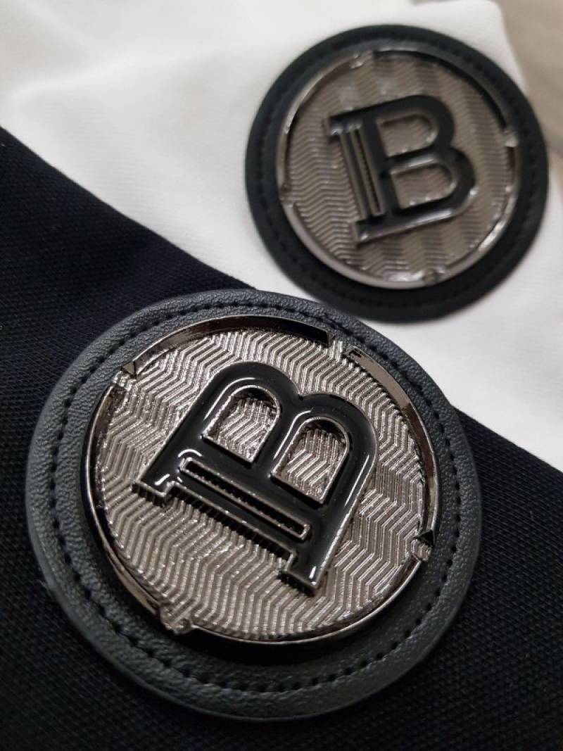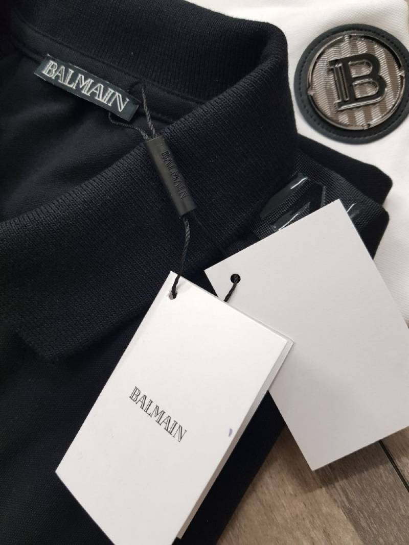 Balmai n Paris Metal Logo Imported Embossed Print Black Collar Neck T-shirt F2832-BL